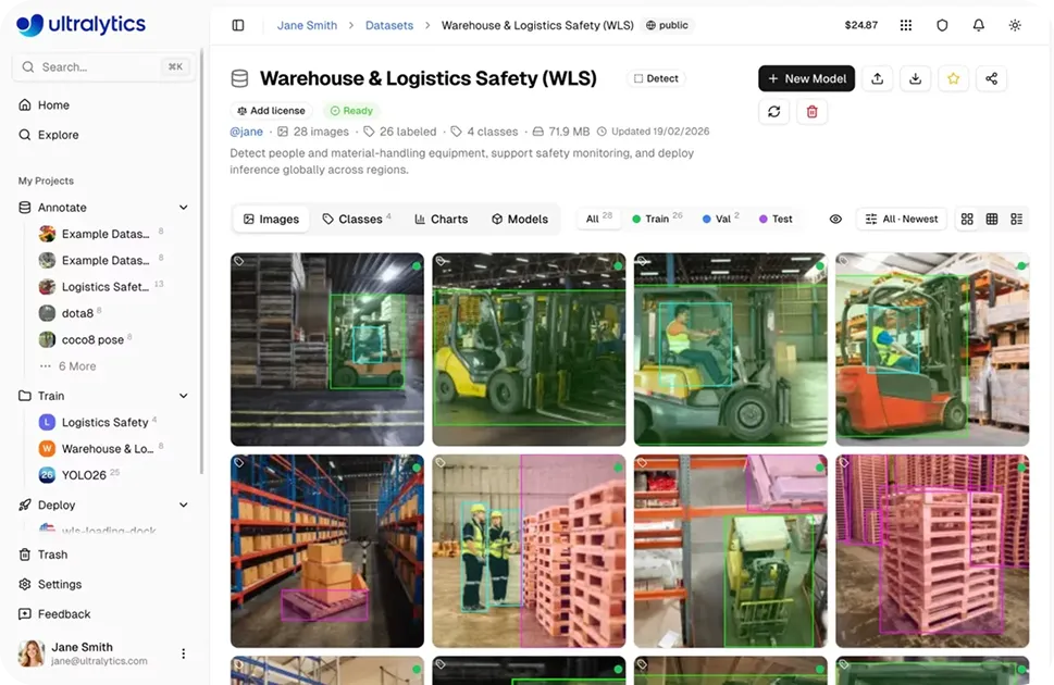 However, warehouse environments introduce their own nuances like varying pallet types, stacking patterns, load conditions, and real-world inconsistencies. This is where the ability to custom-train Ultralytics YOLO models like YOLO26 becomes valuable.
