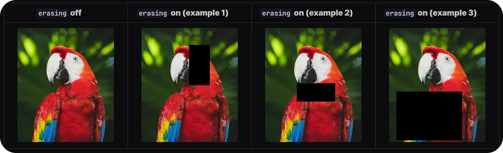 This means the model sees a slightly different version of the image every time, whether it appears brighter, flipped, or partly hidden. Techniques like random erasing can even remove small regions of the image to simulate real-world situations where an object is blocked or only partially visible.