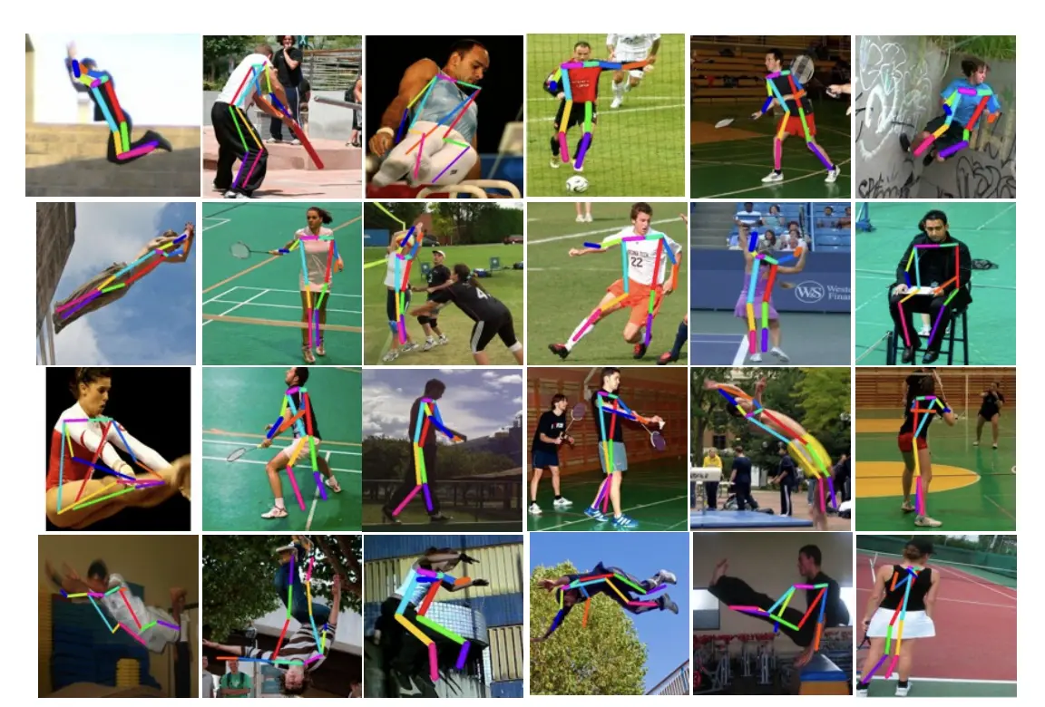 Most human pose estimation systems are trained on annotated datasets where key body parts are labeled across large collections of images and video frames. Using these examples, the model learns visual patterns linked to human body landmarks like the shoulders, elbows, hips, knees, and ankles, so it can predict keypoints accurately in new scenes.