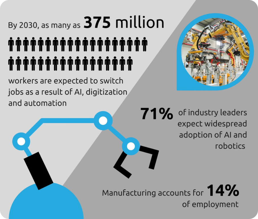 Folglich ist ein Hauptfaktor, der den Vorstoß für KI-gesteuerte Arbeitsplätze vorantreibt, die wachsende Nachfrage nach der Verwaltung und Optimierung von KI-Systemen, die traditionelle Arbeitsabläufe umgestalten. Nehmen wir zum Beispiel die Fertigung. KI-gestützte Roboter, ausgestattet mit Computer Vision, werden eingesetzt, um viele Aufgaben am Fließband präzise zu erledigen.