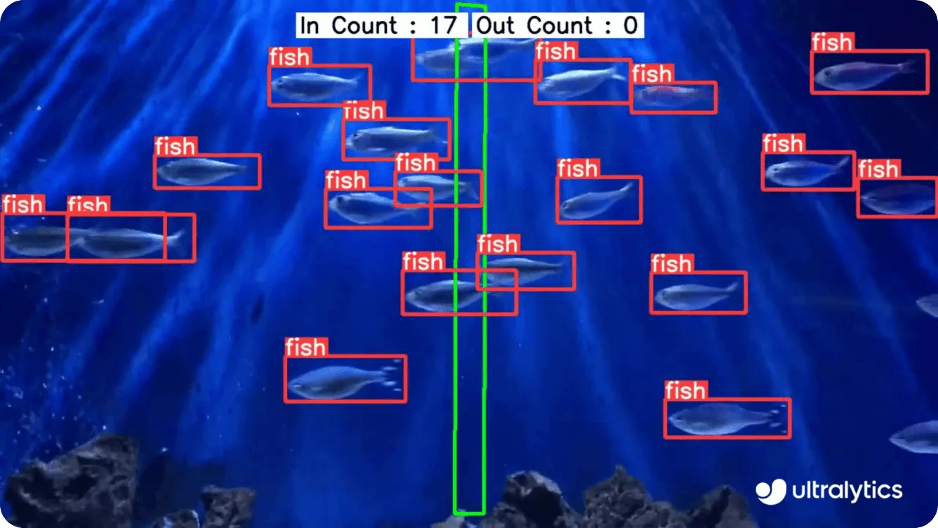 Ein weiteres Beispiel dafür, wie Modelle wie YOLOv8 bei der Bestandsbewertung und -verwaltung helfen können, ist die Verfolgung und Zählung von Fischpopulationen in Echtzeit. Durch die Analyse von Unterwasseraufnahmen können diese Modelle verschiedene Arten genau identifizieren und ihre Anzahl zählen, was wichtige Daten für die Verwaltung von Fischbeständen liefert.