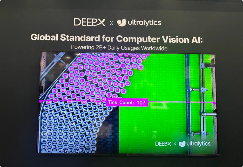 Al día siguiente, nos reunimos con DEEPX en su stand del Centro de Convenciones de Las Vegas para demostrar cómo funcionanYOLO Ultralytics en hardware de IA de vanguardia. En colaboración con el equipo de DEEPX, preparamos demostraciones en directo que mostraban YOLO en acción en casos de uso reales, desde la asistencia sanitaria inteligente hasta el comercio minorista.