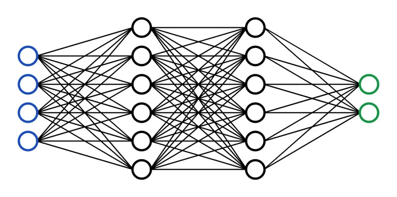 신경망은 여러 개의 병렬로 작동하는 프로세서로 구성되며, 계층으로 구성됩니다. 입력 계층, 출력 계층 및 그 사이의 여러 숨겨진 계층으로 구성됩니다. 입력 계층은 우리의 시신경이 시각 정보를 받아들이는 것과 유사하게 원시 데이터를 수신합니다.