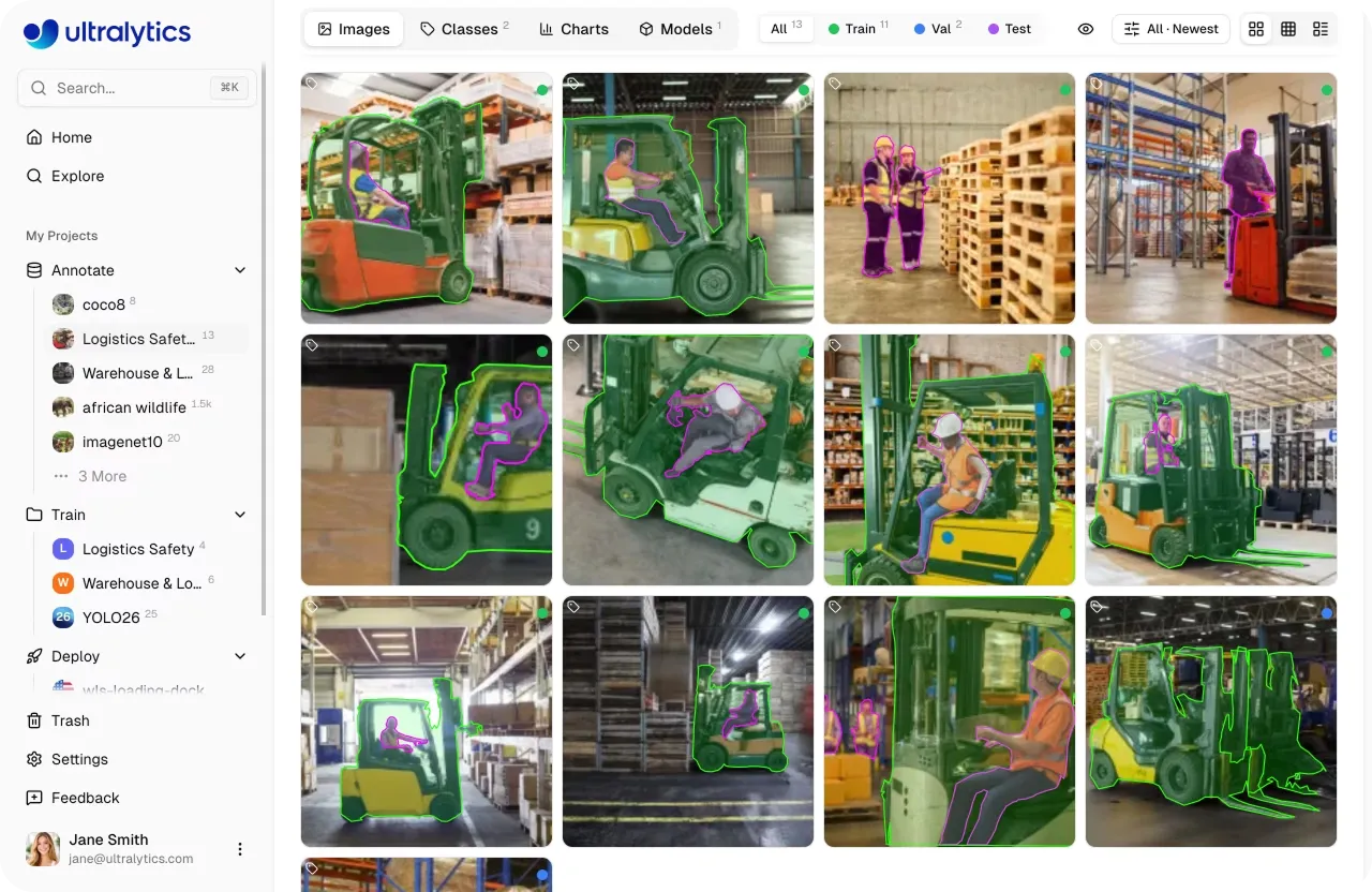 Ultralytics foi criada para simplificar e acelerar este processo. Ao reunir anotação, treino, validação, implementação e monitorização num único ambiente, substitui várias ferramentas da pilha de IA de visão por uma única plataforma de visão computacional, ajudando as equipas a criar e implementar sistemas de IA de visão escaláveis de forma mais eficiente.