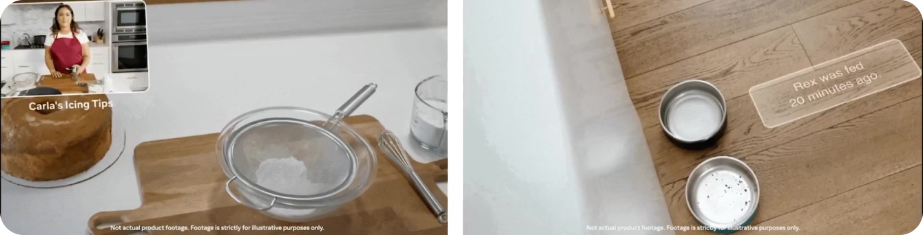 Поскольку такие устройства, как очки AR, становятся все более совершенными, возможности SAM 2 вскоре могут быть интегрированы в них. Представьте, что вы надеваете очки и осматриваете свою гостиную. Когда ваши очки сегментируют и замечают миску с водой вашей собаки, они могут напомнить вам о необходимости ее пополнить, как показано на изображении ниже. Или, если вы готовите новый рецепт, очки могут идентифицировать ингредиенты на вашей столешнице и предоставлять пошаговые инструкции и советы, улучшая ваш опыт приготовления пищи и гарантируя, что у вас есть все необходимые предметы под рукой.