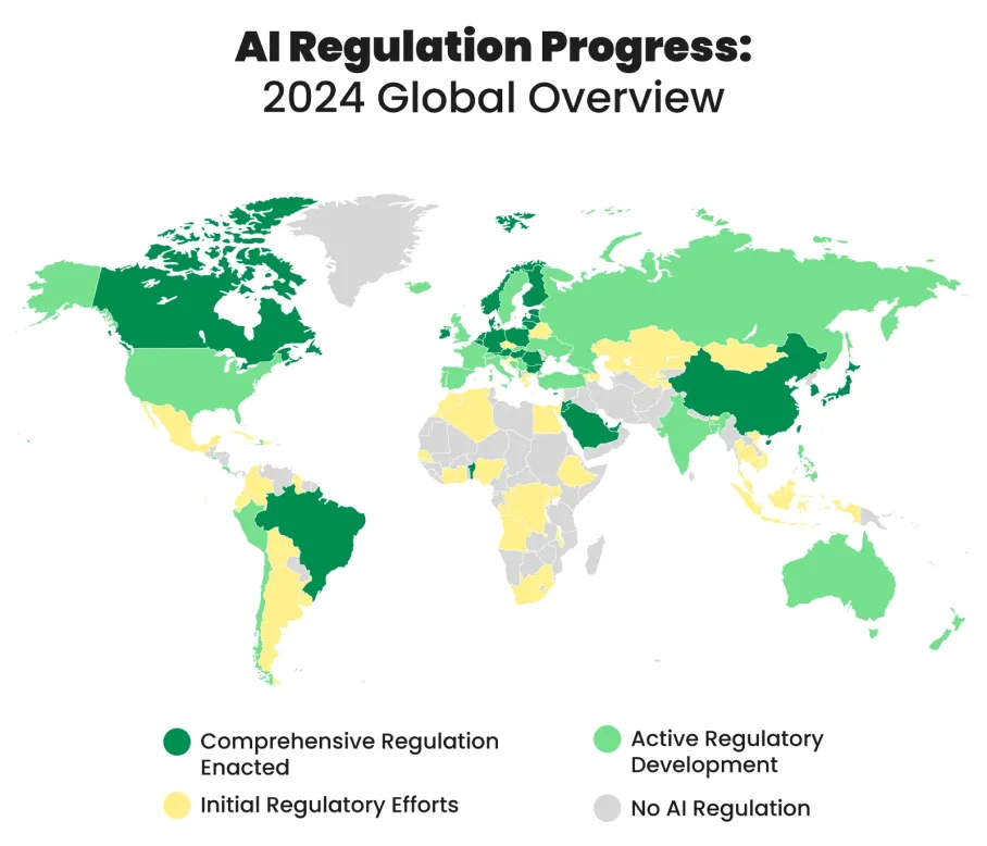Многие страны мира разрабатывают и внедряют правила в области ИИ для руководства этичным и ответственным использованием технологий ИИ. Эти правила направлены на то, чтобы сбалансировать инновации с моральными соображениями и защитить людей и общество от потенциальных рисков, связанных с инновациями в области ИИ.