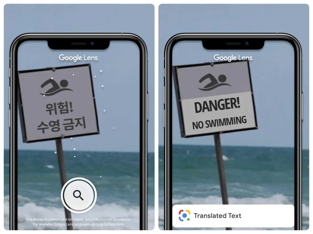 Şekil 3. Bir işareti çevirmek için Google Lens kullanma örneği.