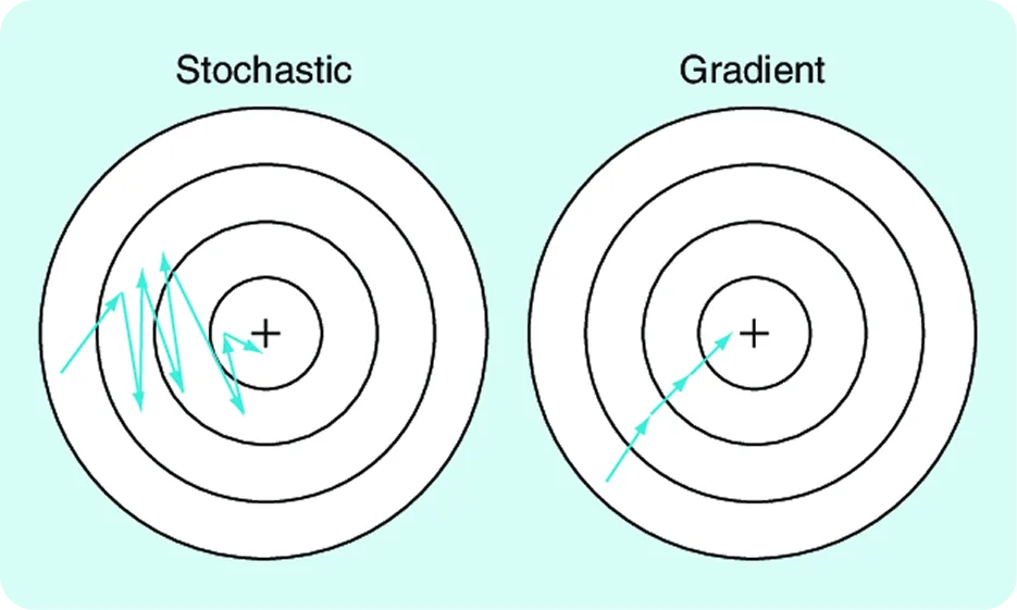 Şekil 3. Stokastik gradyan inişi ile gradyan inişi karşılaştırması (Kaynak)