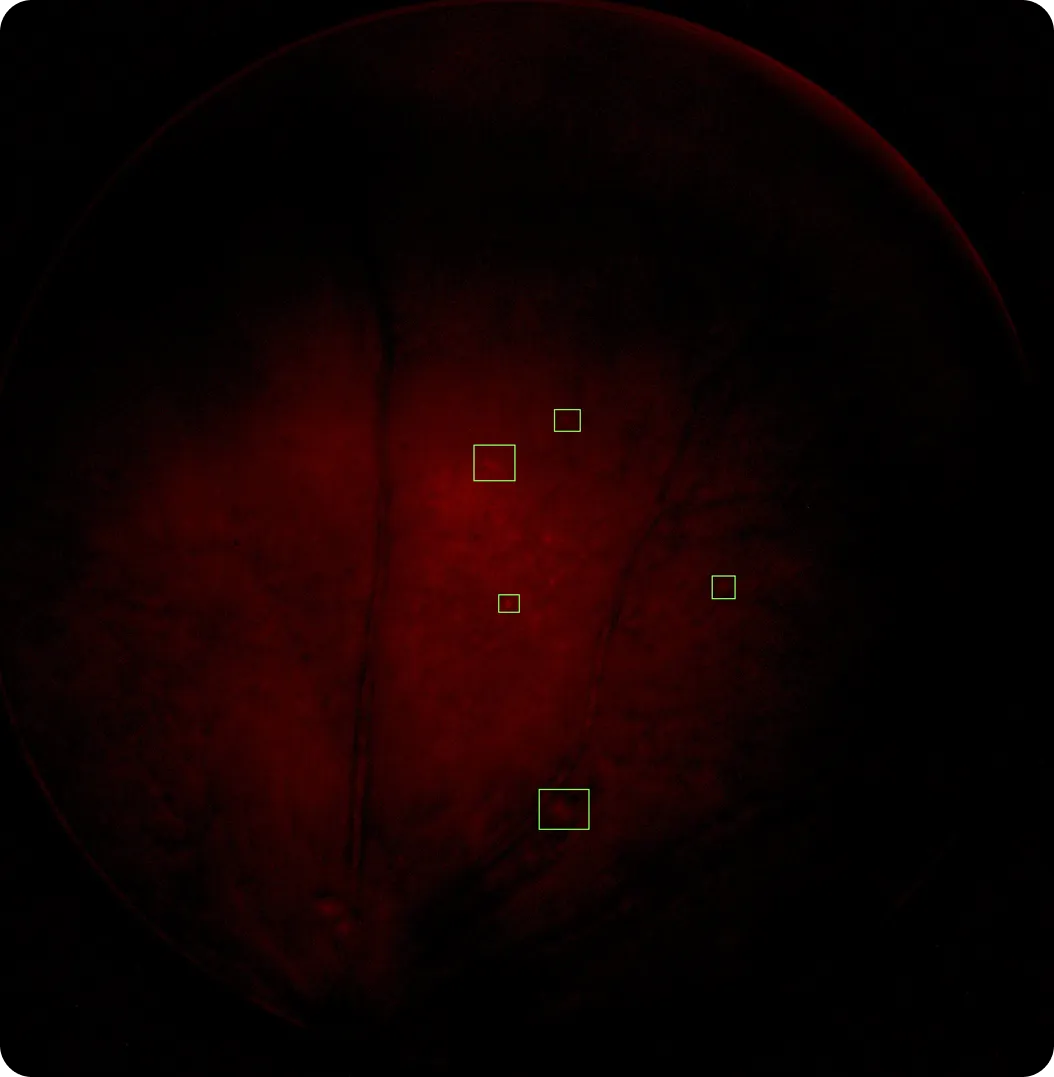 Bu süreçte, Ultralytics YOLO , amiloid beta birikintileri gibi küçük ilgi alanlarını doğrudan retina görüntülerinde tespit etmek ve konumlarını belirlemek amacıyla nesne algılama ve görüntü sınıflandırması için kullanılmaktadır.