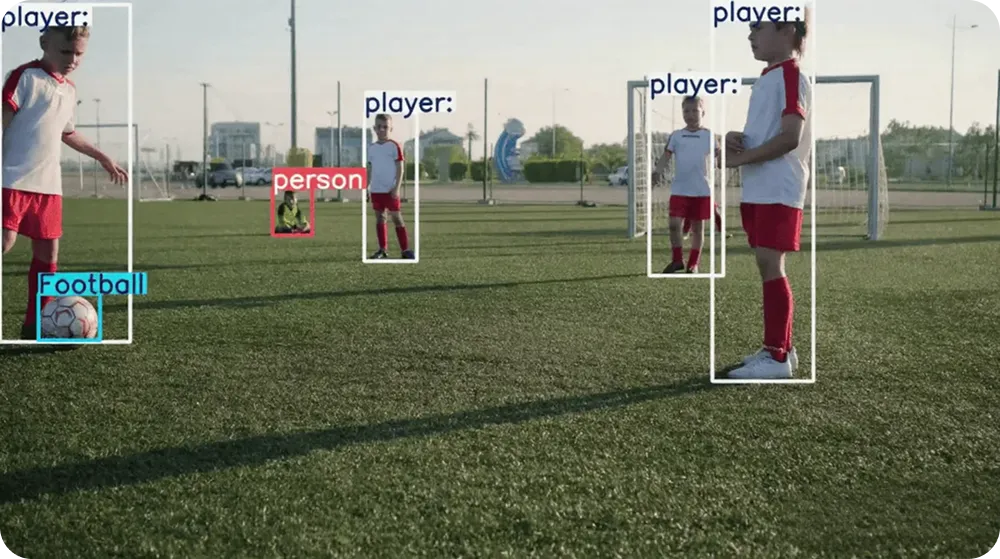 Hệ thống thị giác máy tính có thể detect quả bóng và track Ghi lại chuyển động của nó từng khung hình một, vị trí, tốc độ và hướng di chuyển trong thời gian thực. Dữ liệu này hỗ trợ phân tích hiệu suất và đưa ra quyết định công bằng trong các môn thể thao như bóng đá, cricket và golf.
