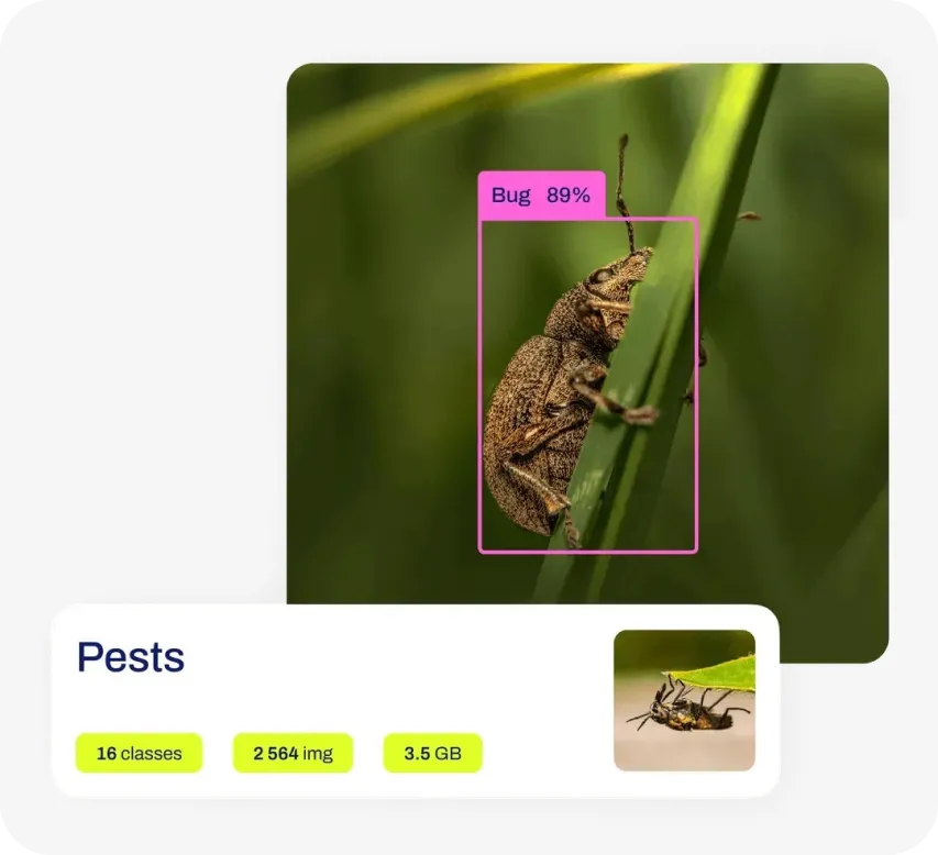 Phát hiện đối tượng có thể được sử dụng để tìm sâu bệnh trong một hình ảnh và xác định vị trí chính xác của chúng. Nó hữu ích khi bạn cần nhanh chóng quét một cánh đồng hoặc nhà kính và xác định vị trí sâu bệnh để xử lý chúng đúng cách. Ví dụ: phát hiện đối tượng có thể được sử dụng để phát hiện các khu vực có hoạt động sâu bệnh cao, cho phép hành động có mục tiêu.