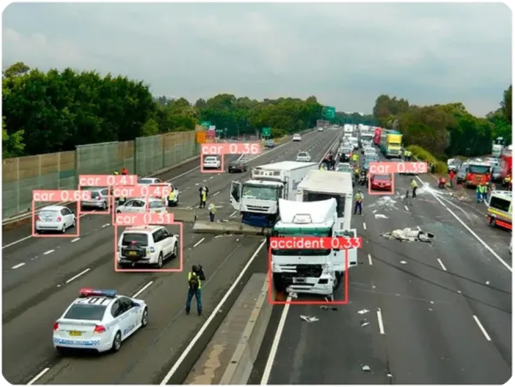 While these methods are still used today, they can result in delayed awareness or missed details, especially on busy highways or during low-visibility conditions. Vision AI improves this process by continuously monitoring roadways in real time using models such as Ultralytics YOLO26.