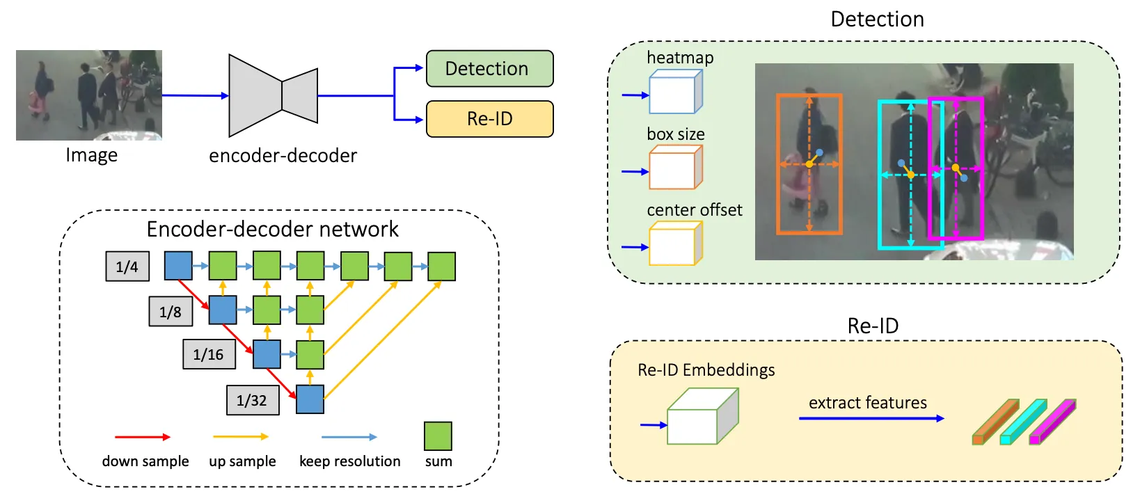 FairMOT是一种多目标跟踪框架,旨在同时track 目标。与传统基于检测的跟踪管道(先执行检测,再通过独立步骤在帧间链接目标)不同,FairMOT通过单一网络同时学习检测与再识别任务。